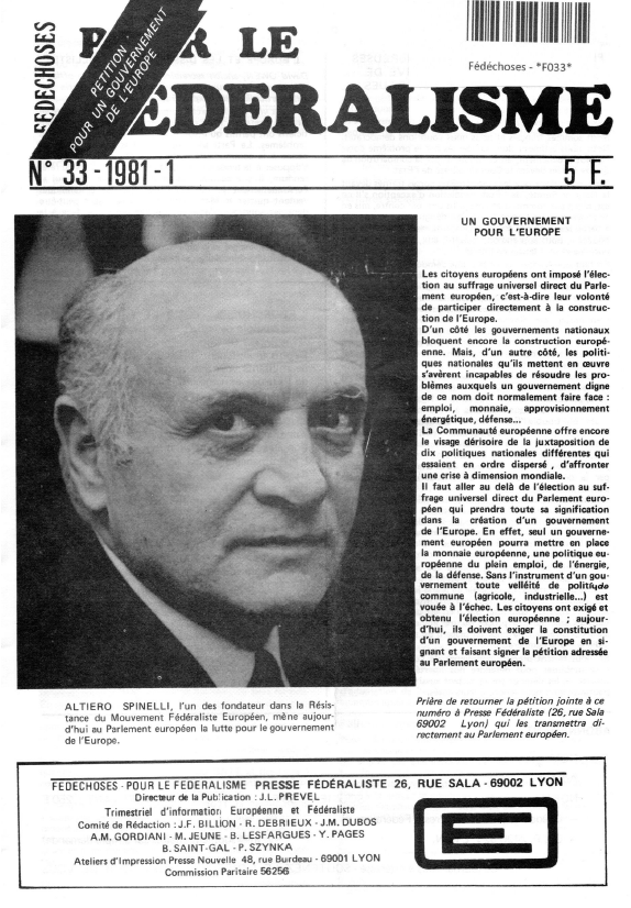 D’un côté les gouvernements nationaux bloquent encore la construction européenne. Mais, d’un autre côté, les politiques nationales qu’ils mettent en œuvre s’avérant incapables de résoudre les problèmes auxquels un gouvernement digne de ce nom don normalement faire face : emploi, monnaie. approvisionnement énergétique, défense. La Communauté européenne offre encore le visage dérisoire de la juxtaposition de dix politiques nationales différentes qui essaient en ordre dispersé d’affronter une crise à dimension mondiale. Il faut aller au delà de l’élection au suffrage universel direct du Parlement européen qui prendra toute sa signification dans la création d’un gouvernement de l’Europe. En effet, seul un gouvernement européen pourra mettre en plate la monnaie européenne, une politique européenne du Sain emploi, de l’énergie, de la détente. Sans l’instrument d’un gouvernement toute velléité de pointus/. commune (agricole. industrielle...) est vouée à l’échec. Les citoyens ont exigé et obtenu l’élection européenne ; aujourd’hui, ils doivent exiger la constitution d’un gouvernement de l’Europe en signant et faisant signer le pétition adressée au Parlement européen.